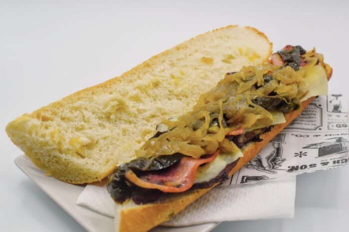 Bocata VAYARA ( lomo, queso fundido, pimiento y cebolla caramelizada)